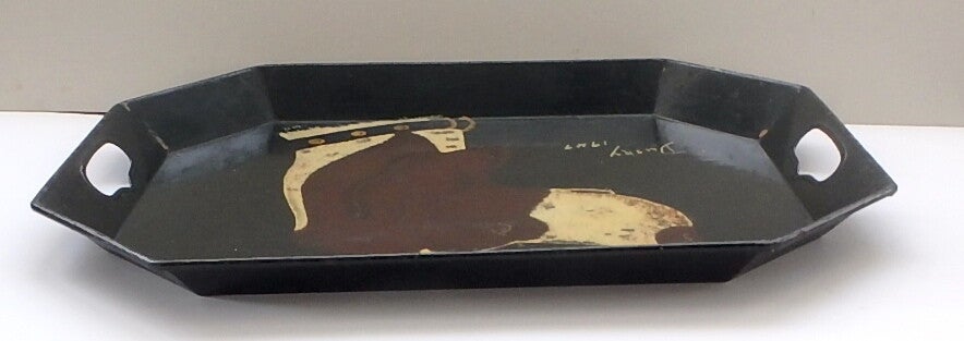 Vintage 1949 Painted Metal Tray-Folk Art Dog Portrait - Dusky
